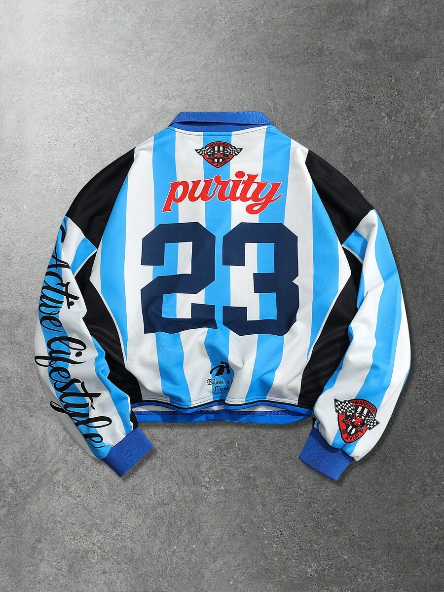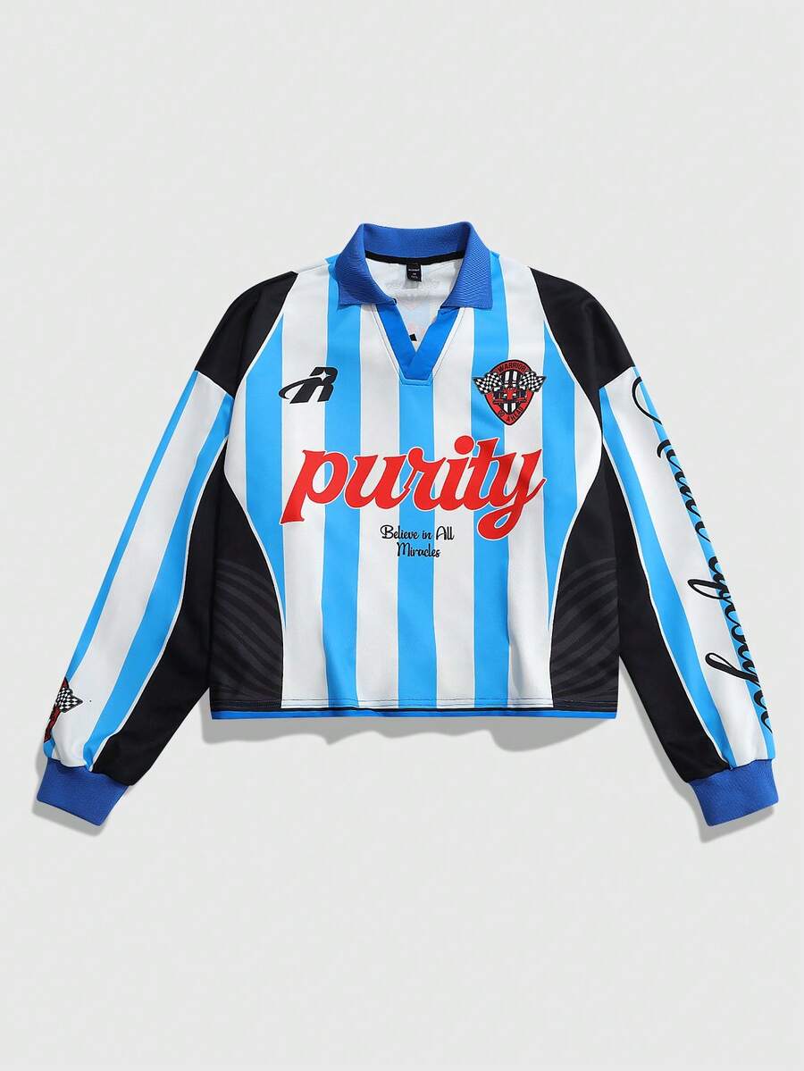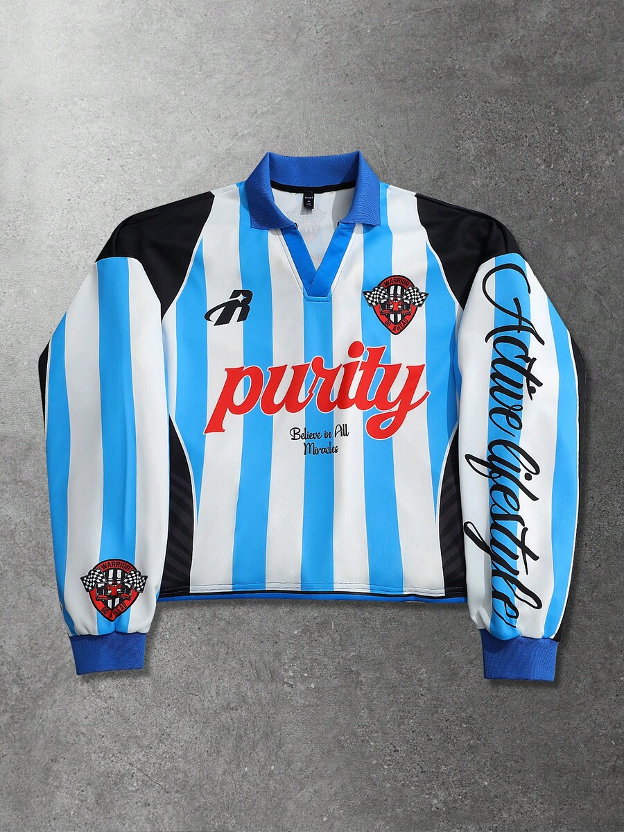T-shirt a maniche lunghe unisex con stampa calcistica inglese, stile casual sportivo