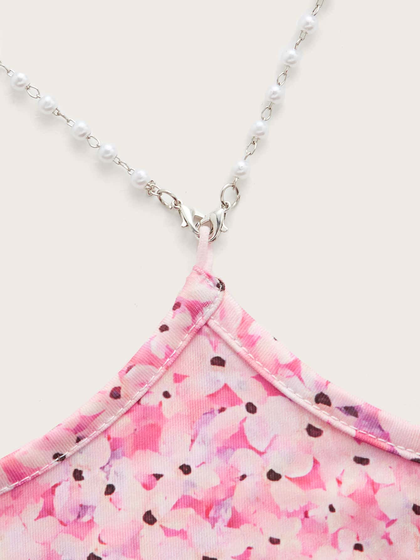 Blusa da vacanza con scollo a V, decorazione a catena e stampa floreale ditsy