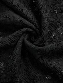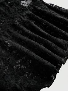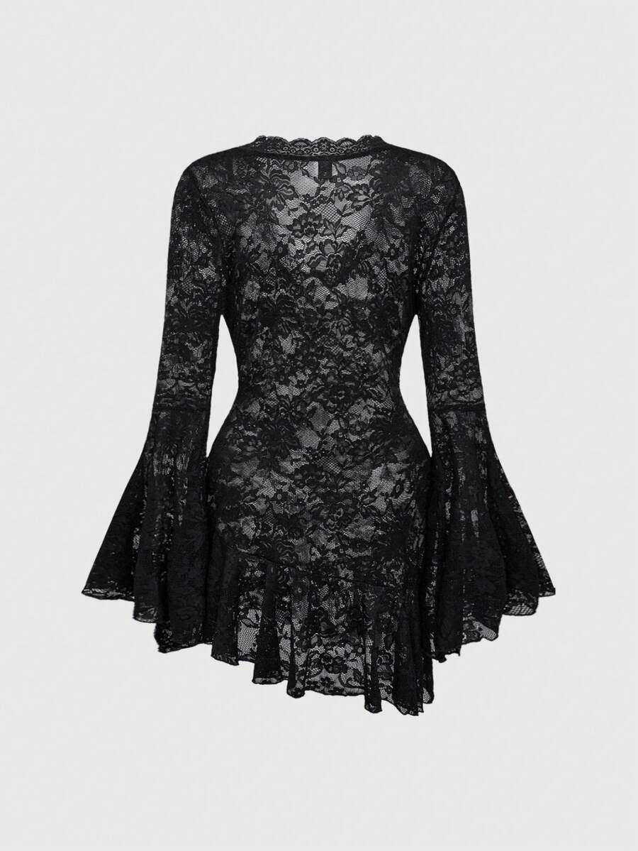 Goth Abito mini con scollo a V, maniche a campana e bordo in pizzo, tinta unita, abito a sottoveste per donna