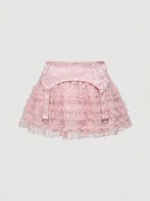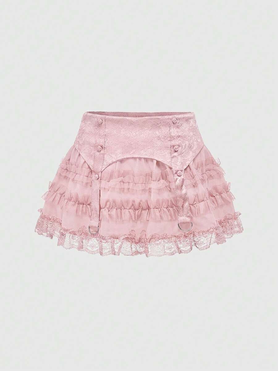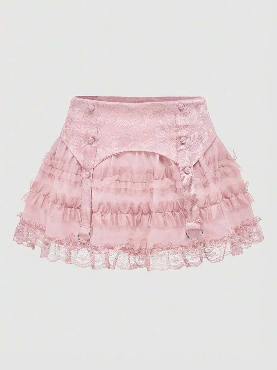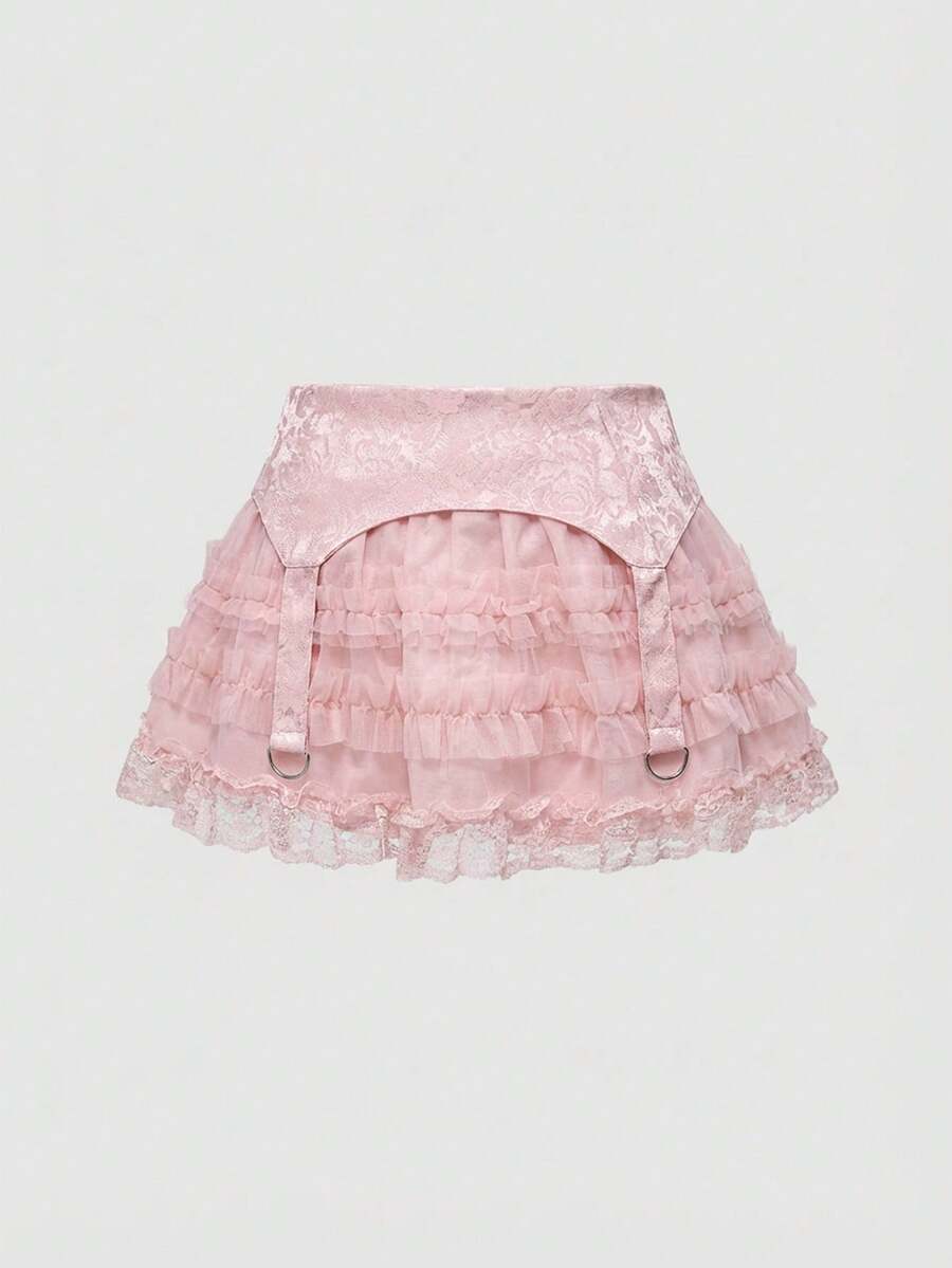 Goth Gonna mini a vita bassa da donna con orlo a coda di torta, in pizzo jacquard e rete, stile gotico, per San Valentino