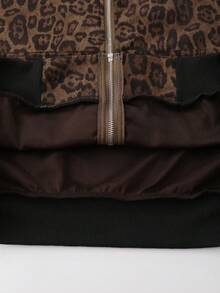 Street Life Felpa con cappuccio e chiusura lampo vintage stile KPOP, stampa leopardata americana, manica lunga