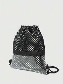 Anime Zaino vintage a coulisse con pois neri, con tasca laterale trasparente con chiusura lampo, zaino casual multifunzionale di grande capacità adatto per scuola, vacanze, attività sociali, shopping