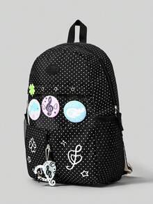 Grunge Punk Zaino vintage stile college con stampe di ossa, stelle, note musicali, quadrifogli e pois, zaino casual alla moda con molte tasche e grande capacità, zaino trasparente adatto per pendolarismo e scuola