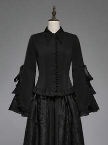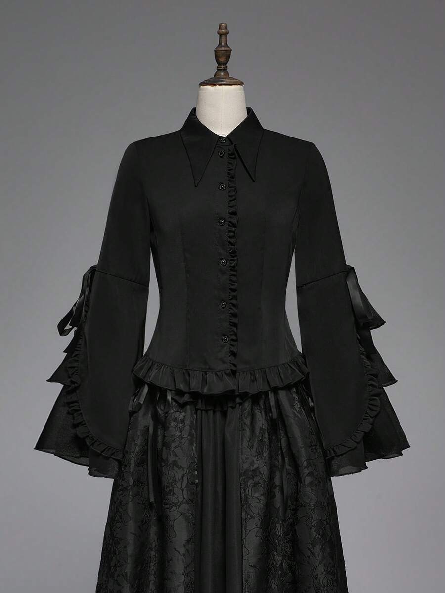 Goth Blusa da donna in stile gotico vintage con maniche a balze multi-strato, vita annodata
