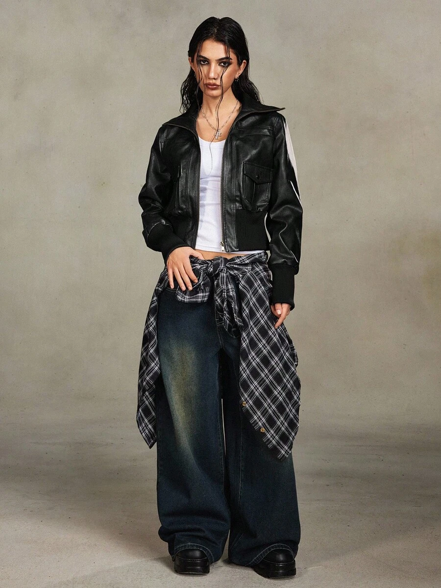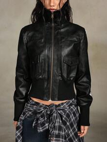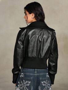 Grunge Punk Giacca da motociclista vintage in stile strada in PU invecchiato per donna