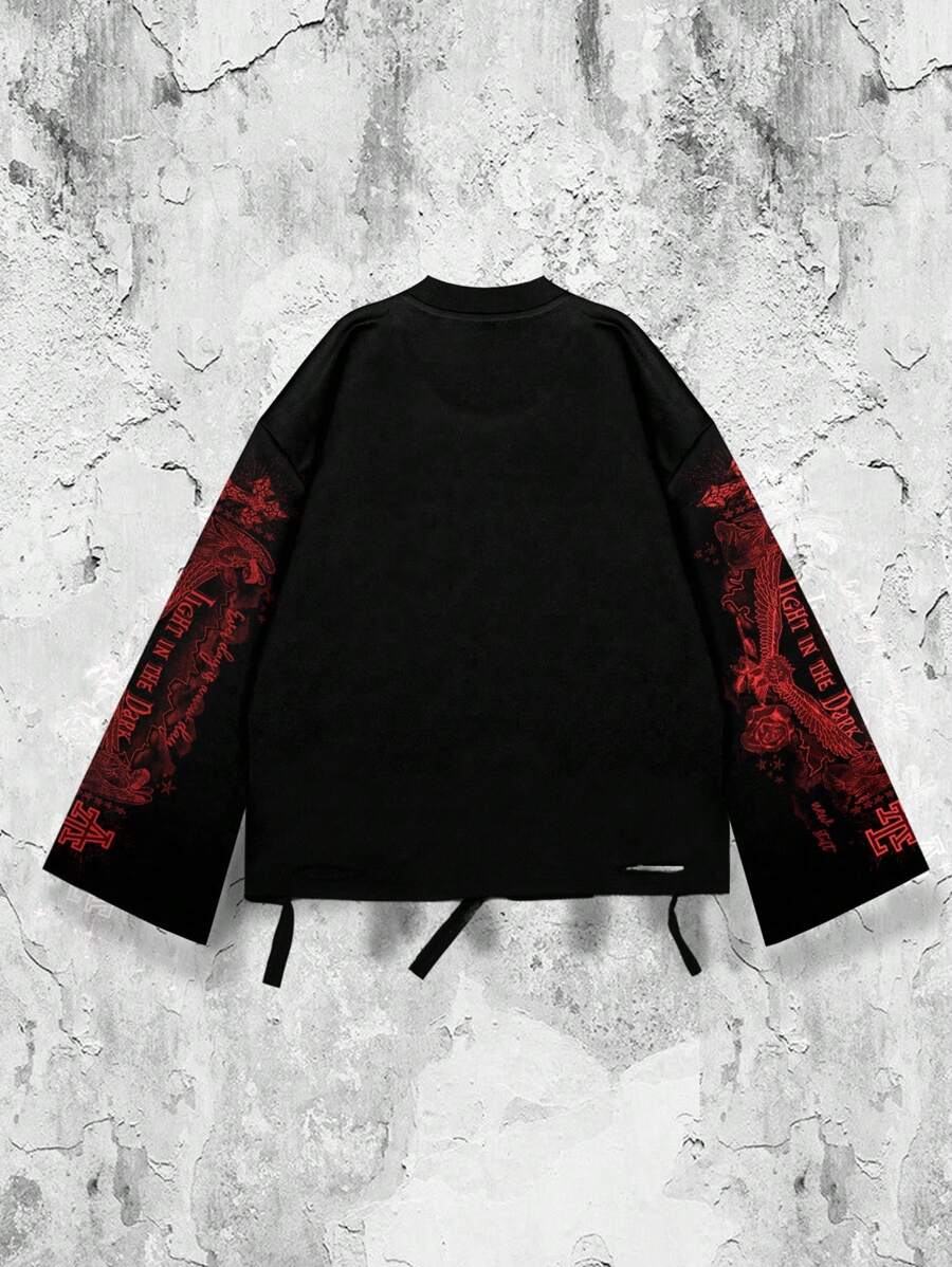 Goth Maglietta vintage da uomo a girocollo con maniche lunghe, stile grafico Saint consumato, stile da strada, autunnale, stile anni 2000
