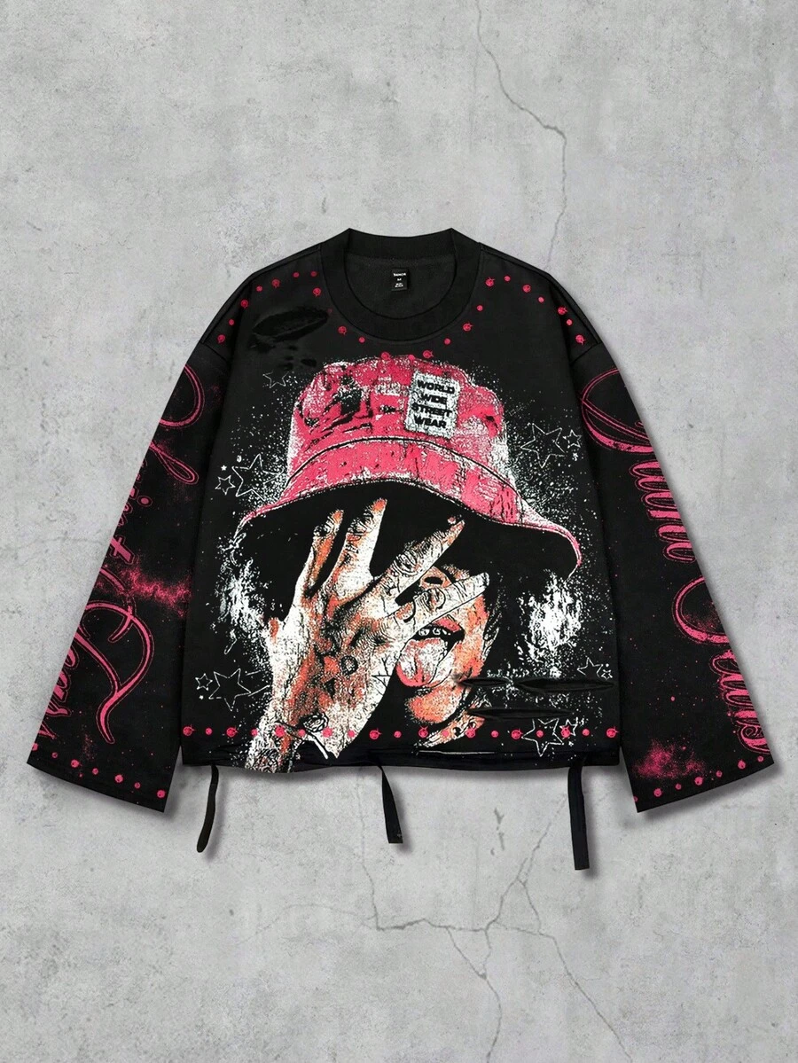 Street Life Maglietta vintage da uomo a girocollo con maniche lunghe, stile strada, grafica Saint consumata, autunno