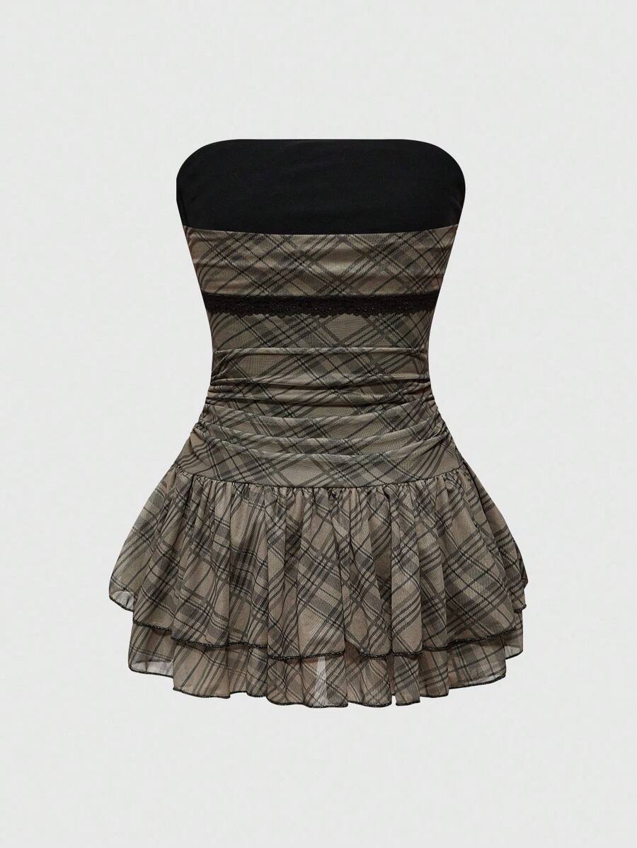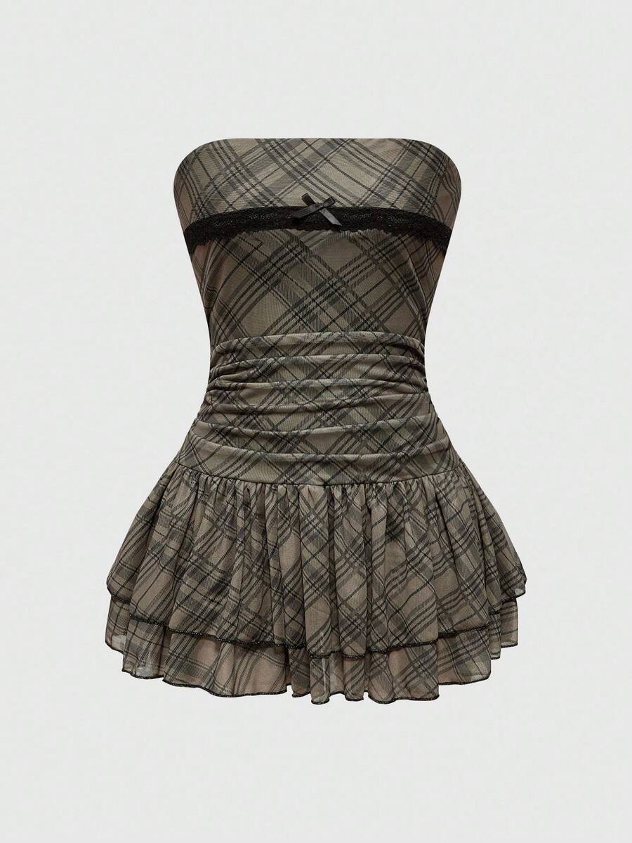 J-Fashion Abito a ruota vintage e dolce con stampa a quadri per donne