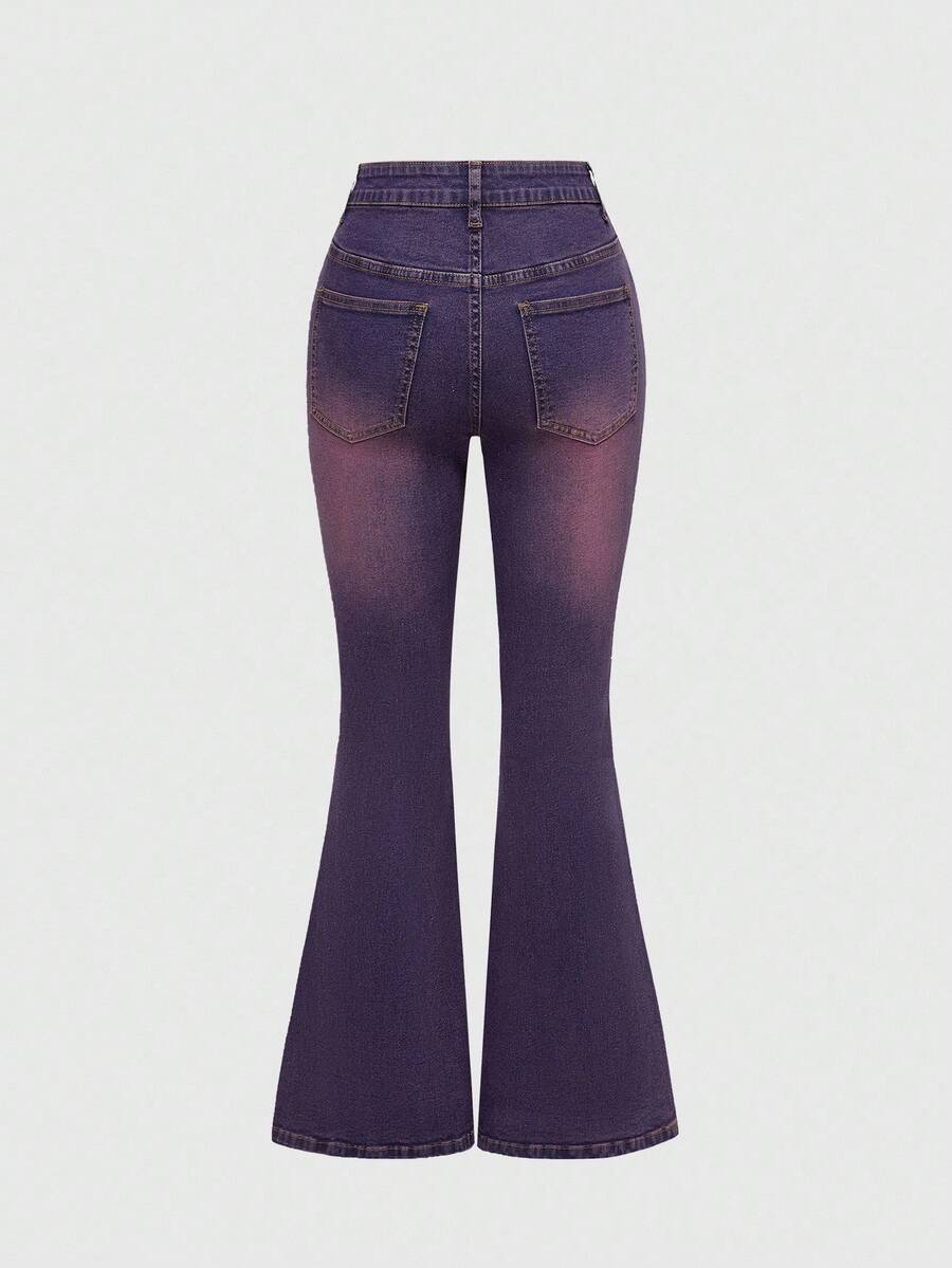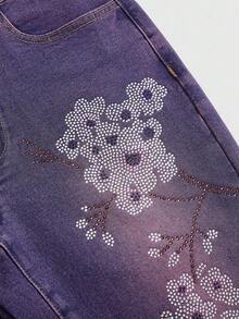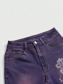 Fairycore Jeans vintage lavati con ricamo floreale, vita bassa, gamba ampia leggermente svasata