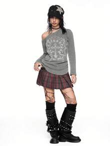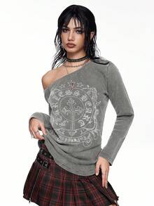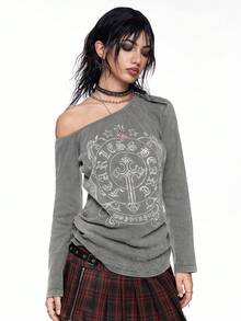Grunge Punk Maglietta asimmetrica vintage Y2K per donne, con stampa glitterata a forma di vite e tie-dye, effetto vissuto, adatta per festival musicali