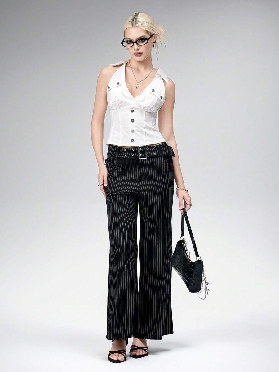 Top canotta con collo ad aletta e tasche cargo, stile vintage Y2K audace