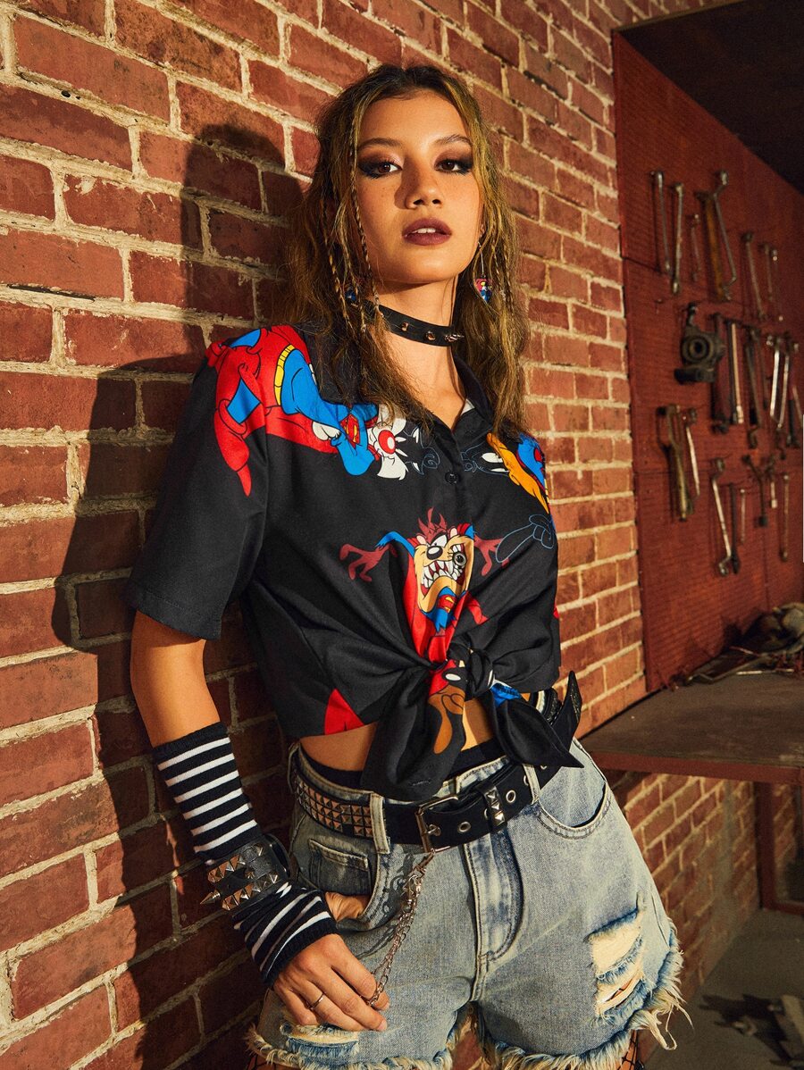 WB 100th | ROMWE Camicia con grafica fumetto con bottone frontale