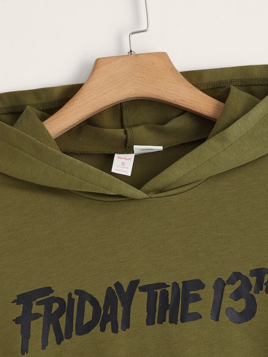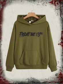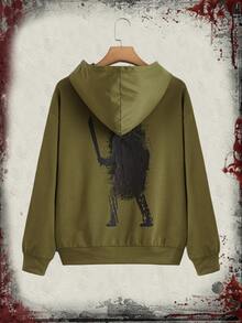 WB Horror | ROMWE Felpa con cappuccio con grafica lettera con tasca a marsupio spalle cadenti