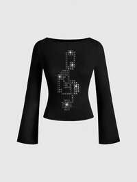 ROMWE Avant Maglietta da donna in stile Y2K retrò streetwear, sexy, con slogan, decorazioni metalliche e stampa di strass