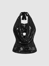 J-Fashion Top canotta da donna con scollo alla halter, arricciato, con stampa a quadri sfumati, in stile Y2K street, taglie comode