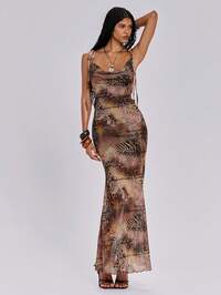 Abito lungo da vacanza con scollo profondo a V, spalline sottili e schiena scoperta, in stile Y2K sexy