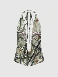 ROMWE Avant Canotta sexy da donna con scollo a V profondo, laccio al collo e schiena scoperta