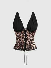 Kawaii Top da donna in stile Y2K, sexy, con occhielli metallici, lacci, stampa leopardata e inserti in rete