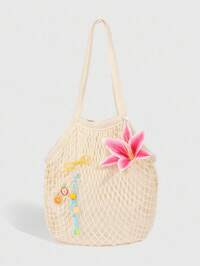 Grunge Punk 1 pezzo Borsa da spiaggia pieghevole con lettera ricamata, borsa a rete a rete per donna, accessorio essenziale per viaggi estivi e all'aperto