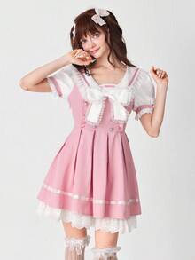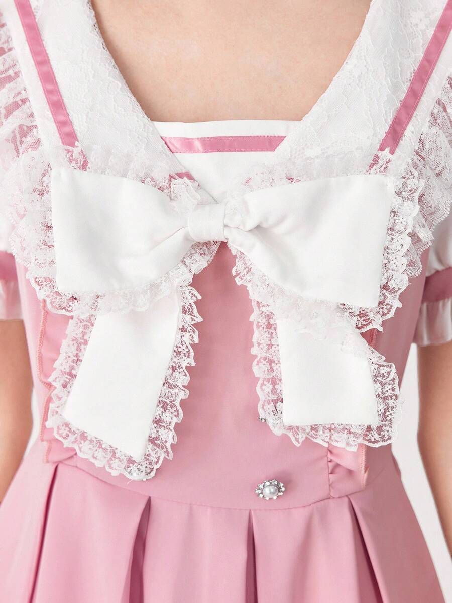 EDITION Abito da donna in stile accademico, con colletto in pizzo a contrasto, fiocco decorativo e maniche a sbuffo plissettate