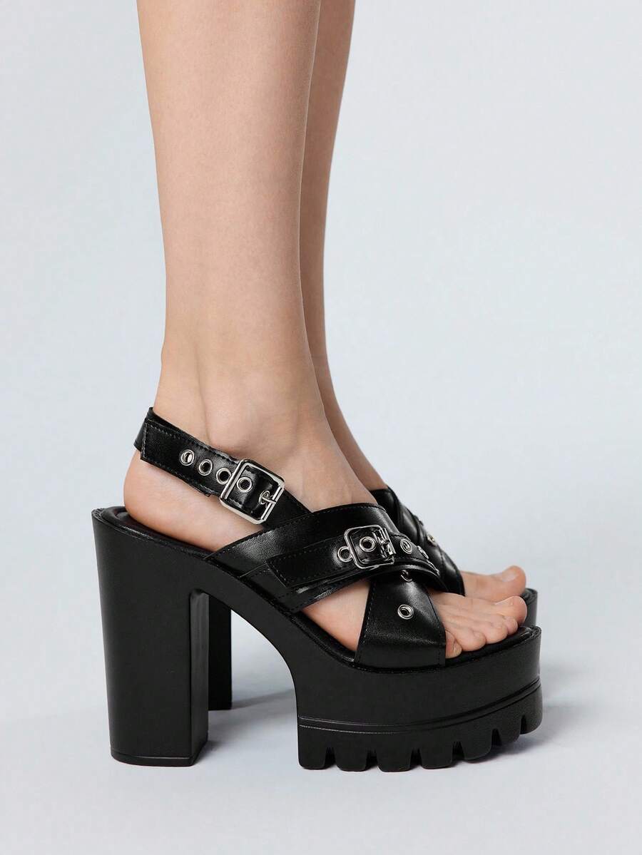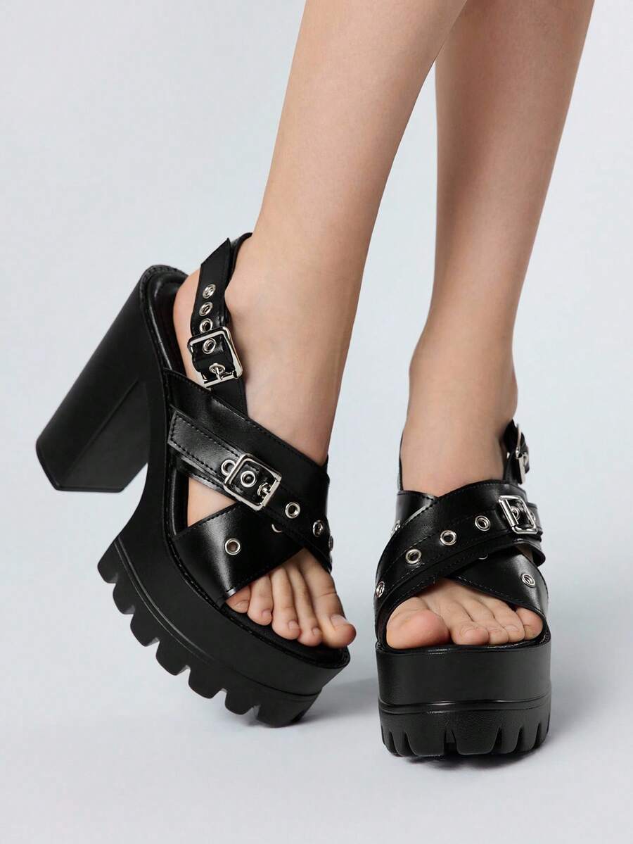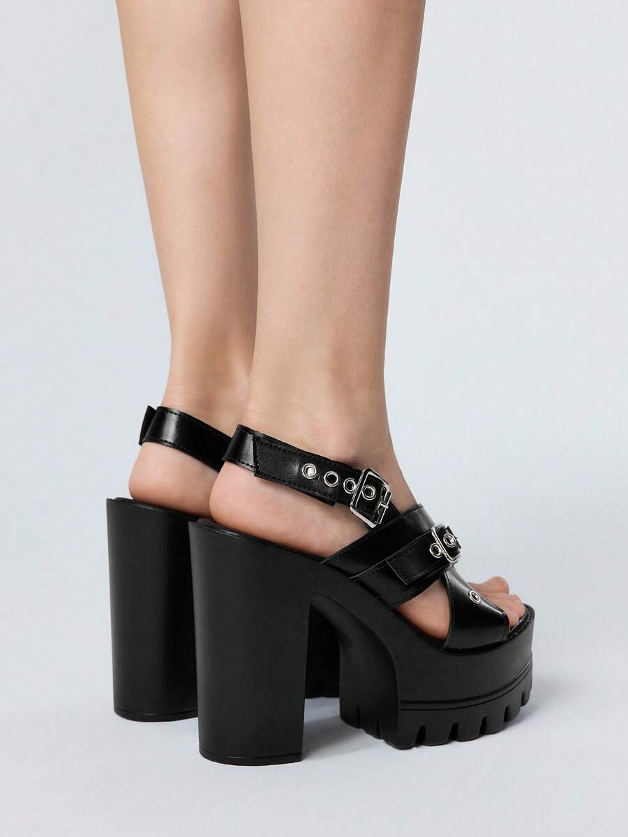 Grunge Punk Eleganti e alla moda pumps casual da donna con punta tonda e tacco largo, sandali stile punk goth romano adatti per feste, uso quotidiano, eventi formali, con effetto di aumento dell'altezza e allungamento delle gambe, tacchi alti comodi e versatili