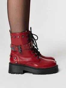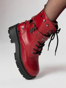 Goth Stivaletti alla caviglia da donna in stile punk alla moda, con decorazione a pipistrello in metallo rosso vino, con zeppa e tacco alto, stile romano casual, con cerniera laterale, adatti per Ognissanti