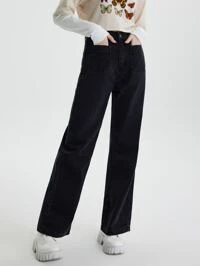 ROMWE Avant Jeans denim dritti casual da donna con tasche a toppa e dettagli sfrangiati al bordo