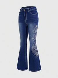 J-Fashion Jeans a zampa di donna in stile retrò Y2K con motivo floreale e decorazioni in strass