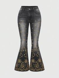 ROMWE Avant Jeans a zampa di donna con ricamo retrò di sole, luna e stelle