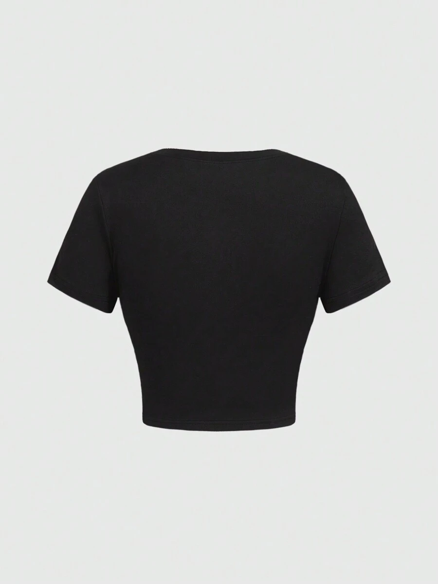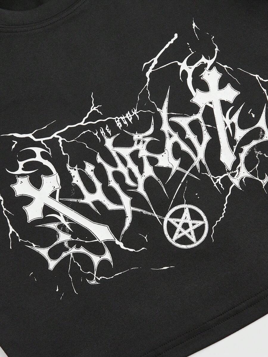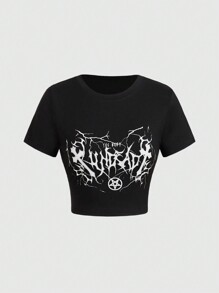 T-shirt Imprimée Avec Alphabet Gothique Et Pentagramme Pour Femme
