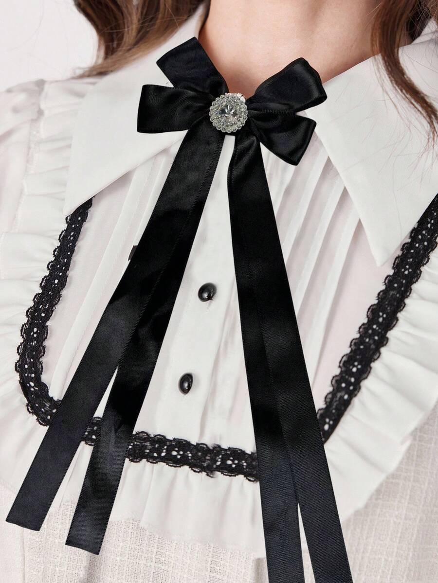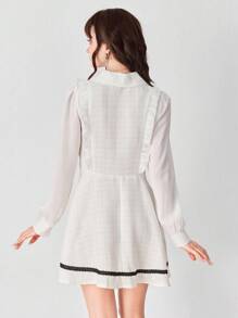 EDITION Abito mini a maniche lunghe da donna in stile Hime Gyaru, con contrasto di colori, arricciature in tessuto, pizzo e patchwork