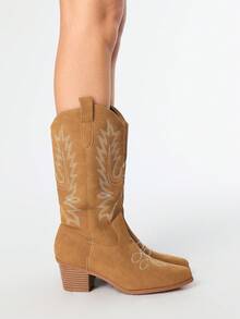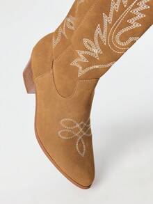 Fairycore Stivali western da donna con design traforato a forma di ali di farfalla ricamate, nuovi stivali in pelle al ginocchio per primavera e autunno