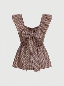 Kawaii Camicia A Quadri Con Cintura In Vita Per Donne