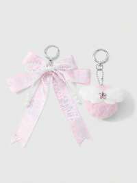 Kawaii 1 pezzo Elegante ciondolo portachiavi con nastrino gotico in argento, perline CCB, fiocco e cuore, regolabile, adatto per lavoratori d'ufficio e studenti, regalo perfetto per San Valentino e Ognissanti