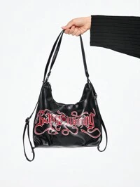 Grunge Punk 1pc Punk Cross Studded Skull Prints Ruffle Cloud Design Women Shoulder/Underarm Handbag, Versatile Dark Style, Halloween Bags Perfect For Fancy Party Matching With Halloween Costumes