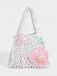 Fairycore 1 pezzo Borsa da spiaggio stile bohémien, borsa da donna traforata per vacanze, con charm e decorazione floreale tropicale
