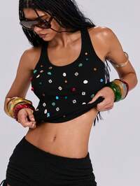Top canotta da donna con fiore metallico, stile vacanziero, scollo alla halter sexy