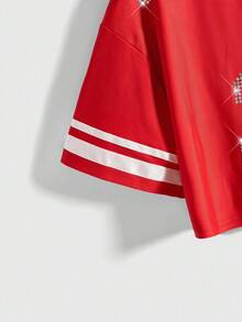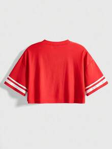 ROMWE Avant Maglietta a maniche corte da donna con scollo a V, dettagli con strass e stampa a righe