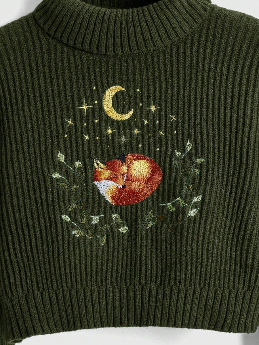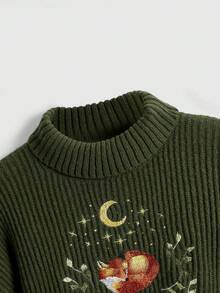 Fairycore Maglione vintage casual da donna in maglia a costine con ricamo a volpe, adatto per autunno/inverno