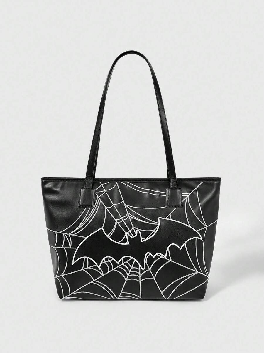 Grunge Punk Borsa a tracolla vintage da donna con ricamo a pipistrello, versatile per pendolarismo, grande capacità