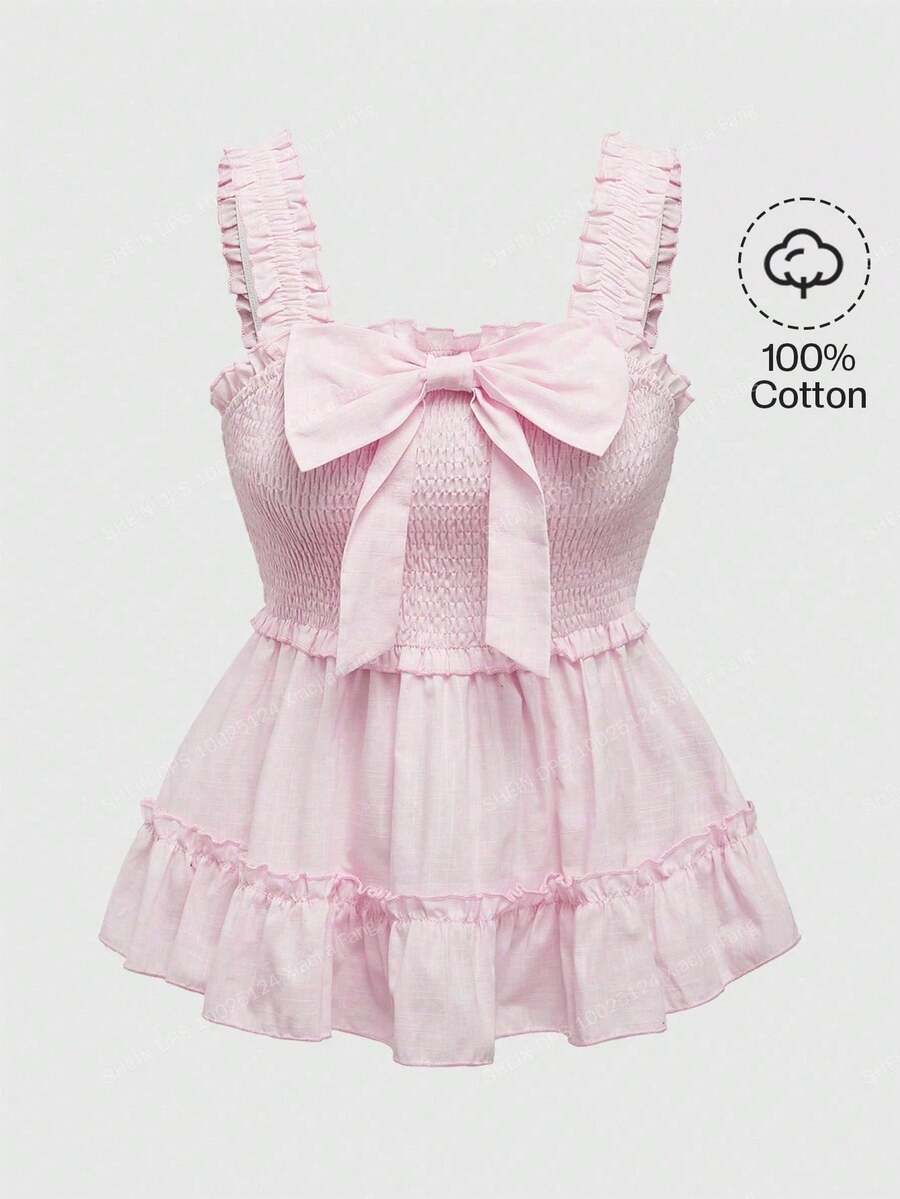 Kawaii Top a fascia larga da donna con fiocco decorativo, casual e semplice