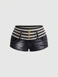 Grunge Punk Shorts di jeans estivi casual da donna a righe e patchwork