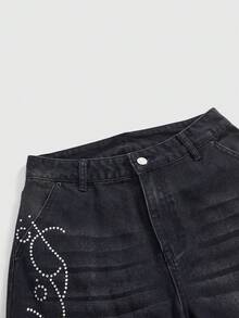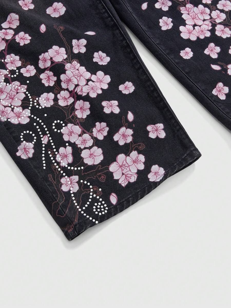Street Life Jeans ampi da donna in stile Y2K streetwear, con ricamo di fiori di ciliegio e decorazioni in strass