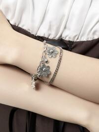 Kawaii 1 pezzo Braccialetto alla moda e semplice con ciondolo a catena con cristalli, perle, stelle, fiori e fiocchi, regalo per San Valentino, mamma, madre, festa della mamma