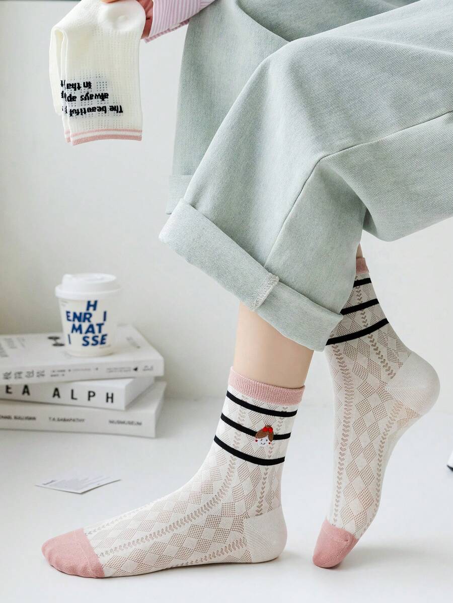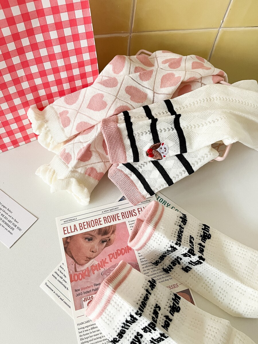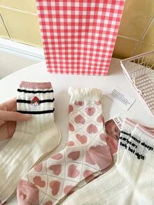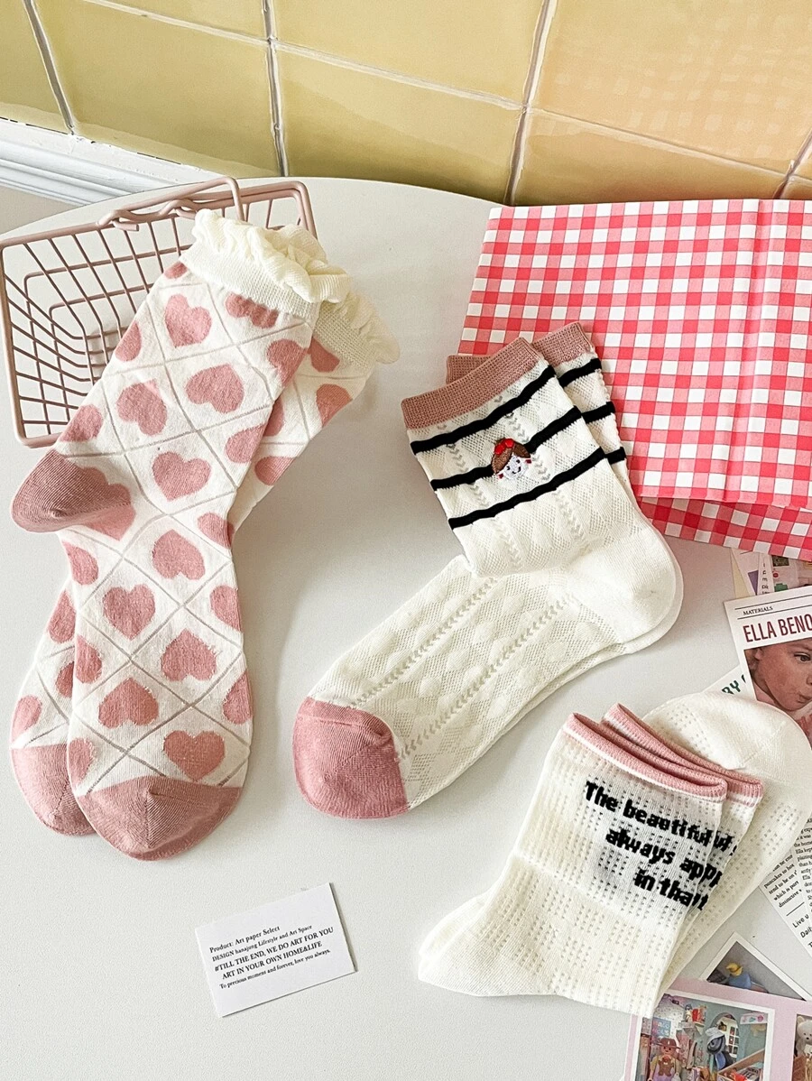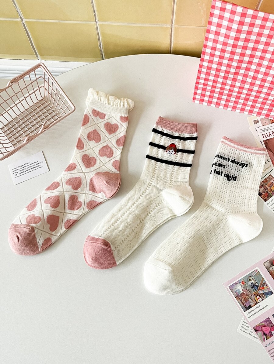 Donna 3 paia Calze girocaviglia cuore & motivo lettera alla moda per quotidiano