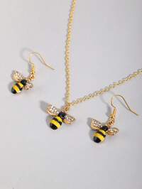 Kawaii 1 pezzo Collana con ape + 1 paio di orecchini con ape, set di gioielli elegante e carino con strass e perle finte a forma di ape e insetto colorato, adatto per uso quotidiano, vacanze, regali