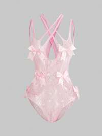 ROMWE Avant Set di biancheria intima senza fili sexy con decorazione a fiocco a pois, ispirato allo stile della Sicilia, adatto per le donne