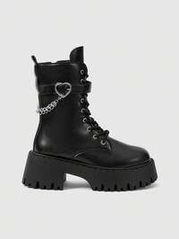 Goth Stivali alla caviglia da donna in stile gotico Y2K punk, con piattaforma, impermeabili, in pelle verniciata a specchio, con rivetti metallici, catena, allacciatura e cerniera laterale, punta tonda, adatti per festa, club, palcoscenico, combattimento, motociclista Kawaii Stivali da donna stile gotico con punta tonda, tacco chunky, impermeabili, platform, stile punk, in tessuto scamosciato, stivali neri con tacco alto, adatti per feste, uso quotidiano, per aumentare l'altezza e allungare le gambe, Ognissanti