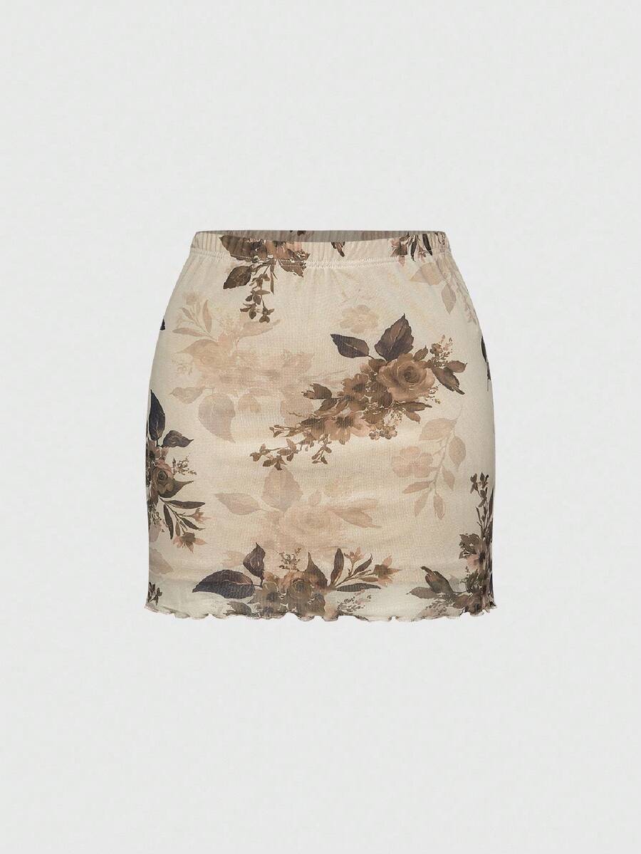 Fairycore Donna estate casuale gonna a rete stampata floreale