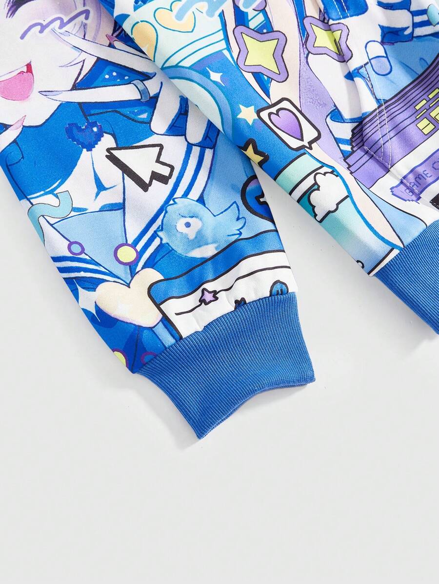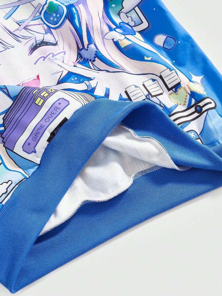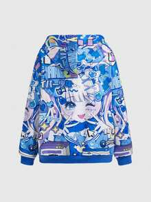 Felpa con cappuccio casual da donna, manica lunga, con stampa di ragazza anime, larga e con coulisse